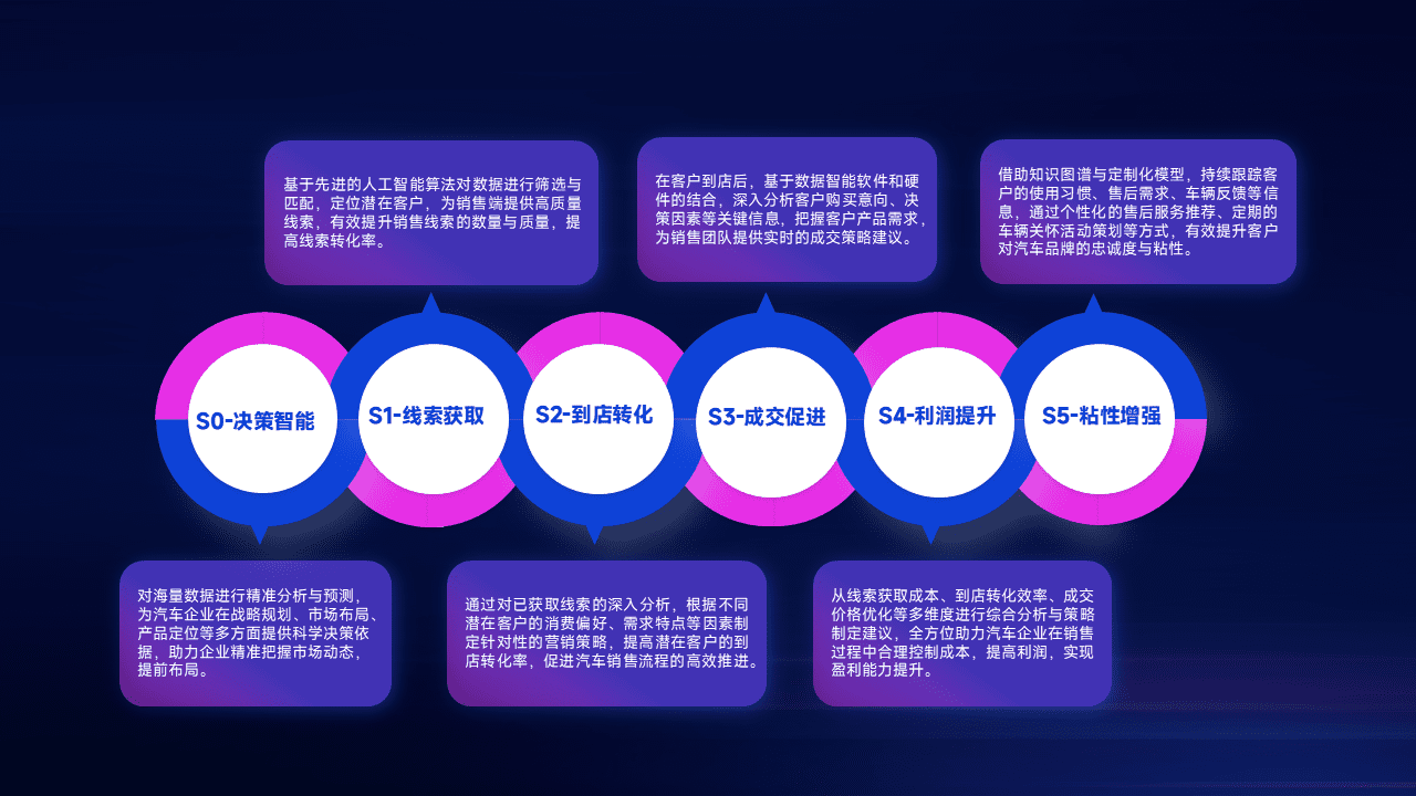 通过拓宽潜在客户来源、、优化线索分配并提高到店转化率,,,以增强销售效率。。。同时,,,,利用线索数据不断优化分析模型,,有效提升转化率,,,扩大营销影响力。。。。